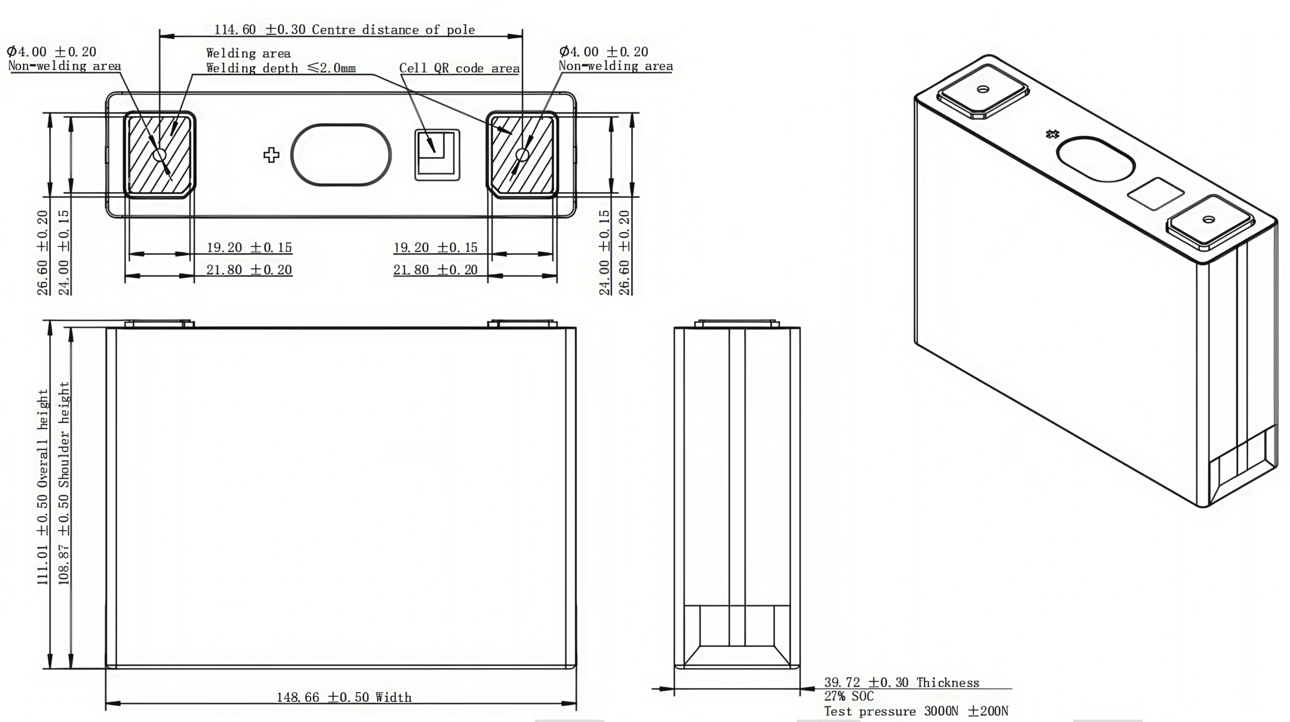 • 📏 Ultra-Compact Dimensions: Despite its power, the cell remains incredibly space-efficient with a width of 148.66mm and a total height of just 111.01mm, fitting into the tightest compartments.