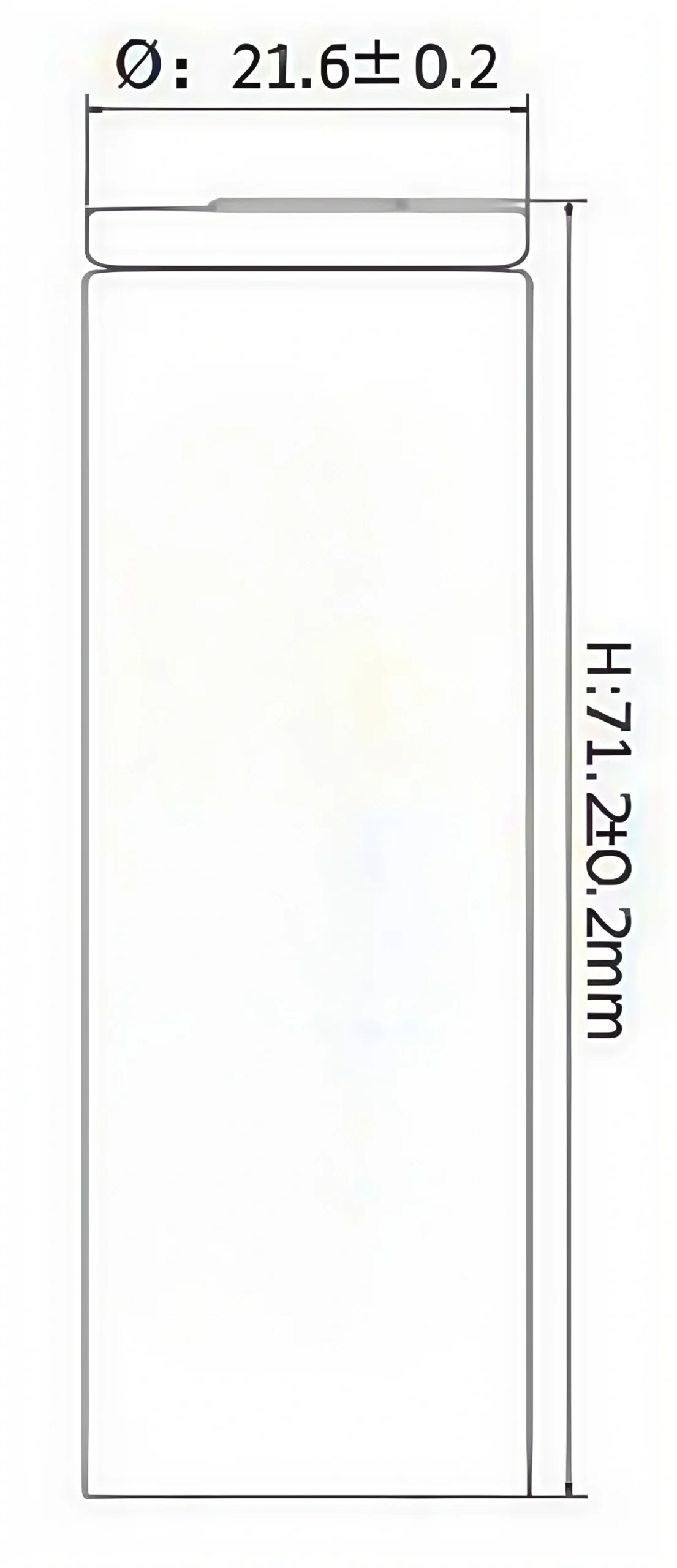 Standardized 21700 Dimensions: Engineered with a precise diameter of 21.6±0.2mm and a height of 71.2±0.2mm for seamless mechanical fit.