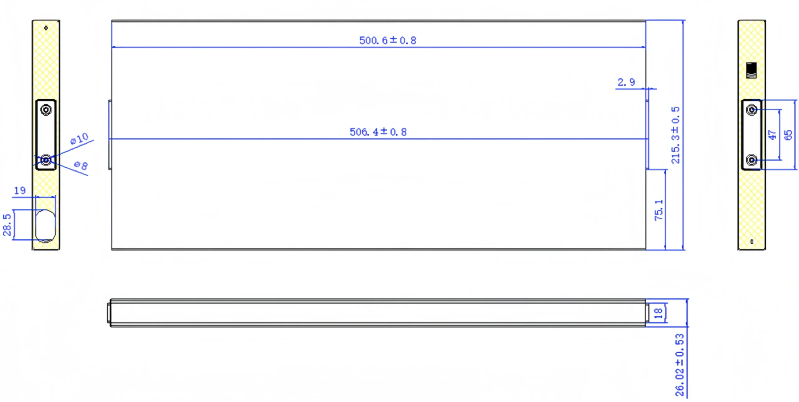 | Dimensions (T*L*H) | 26 * 500 * 215 mm |
